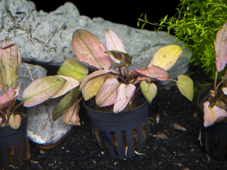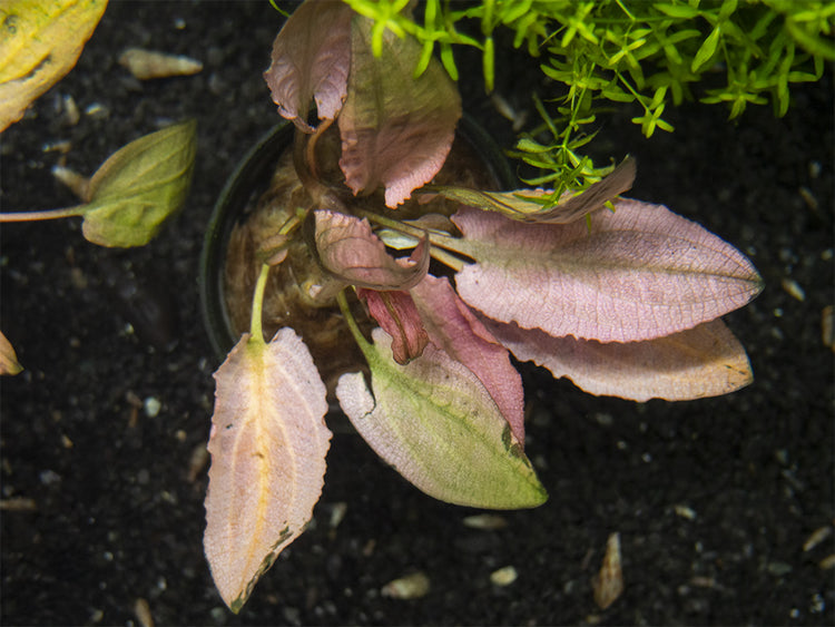 CO2 supplementation is beneficial, but not necessary for this plant. It will also benefit from supplemental fertilizers and nutrient-rich substrate. These factors are crucial in optimal pink coloration. This plant is initially grown emersed and is typically green, not pink, upon arrival.