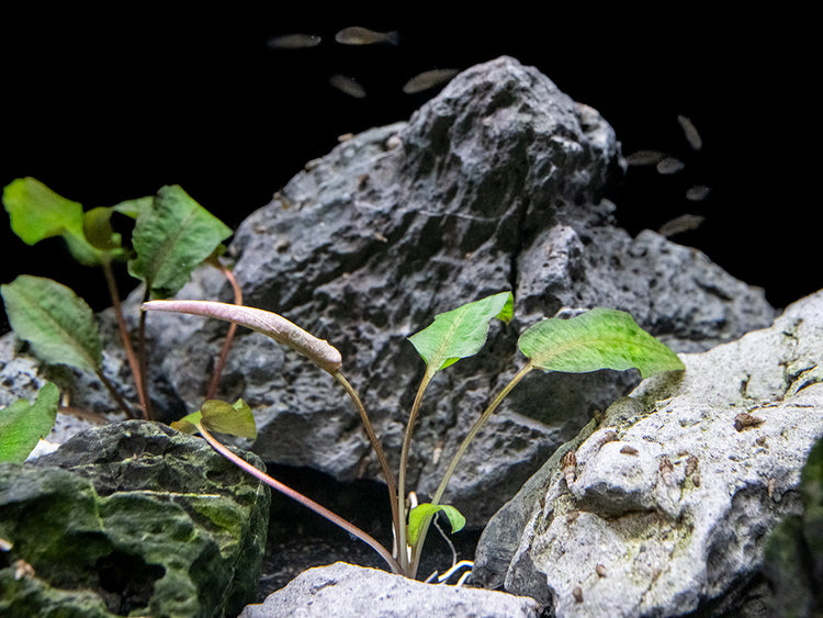 Cryptocoryne sp. "Flamingo" is a relatively new and uncommon Cryptocoryne mutation that is highly remarkable for the pink coloration of its submerged form. With proper care, it can develop and maintain its pink coloration and be a highly stunning plant in the aquascape. It requires stable conditions, especially when newly established, but is not demanding otherwise.
