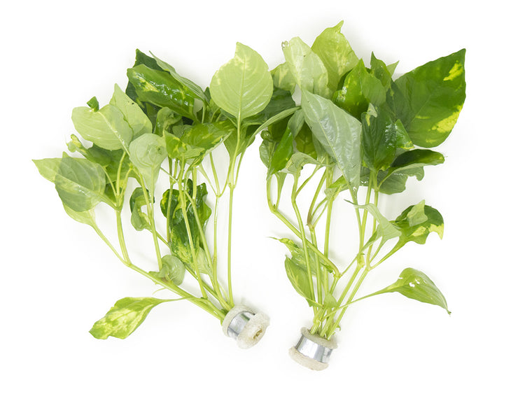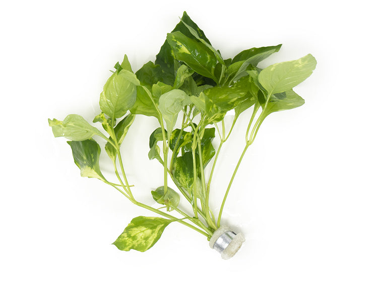 Variegated corymbosa is a very hardy, attractive stem plant with broad leaves that portray a variegation pattern throughout. It can thrive in low-tech setups as long as it has moderate to (preferably) high lighting. In order to maintain beautiful variegation patterns, this plant would do best in high lighting. As it matures, its leaves provide extensive foliage that is very suitable for the background of the aquarium. Variegated Corymbosa has broad, variegated white and bright-green leaves and thick stems that grow very quickly making it a beautiful background plant. In addition to being an excellent aquarium plant, it is also ideal for paludariums.