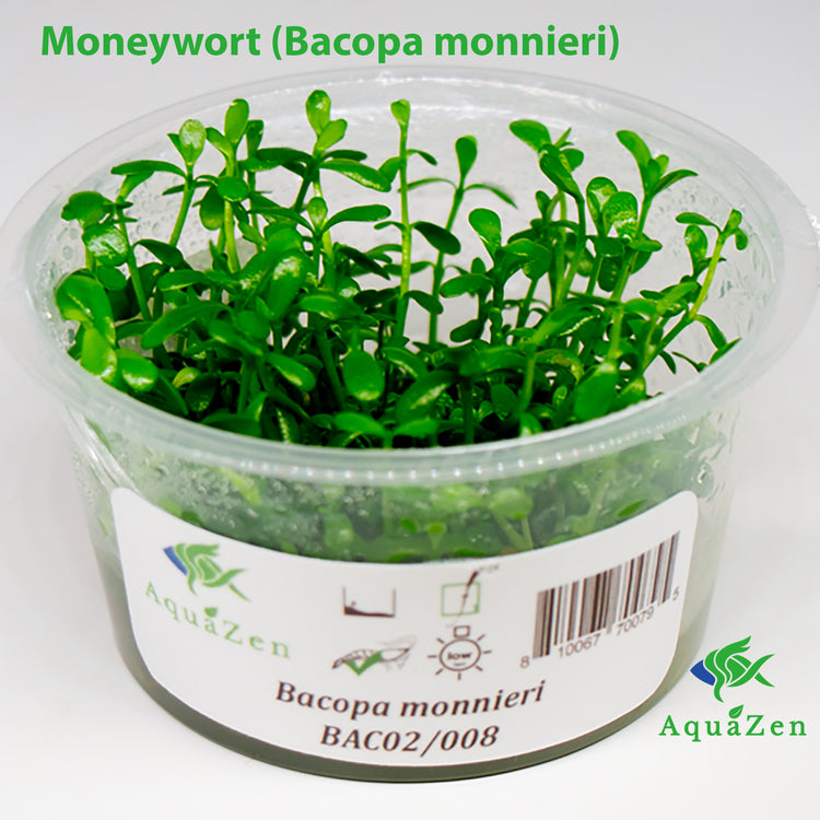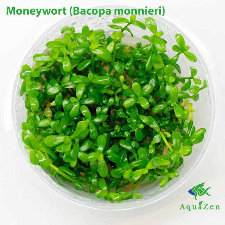 Moneywort (Bacopa monnieri) is an extremely popular aquarium plant due to its bright green coloration, durability, and ease of care. It has very few requirements beyond reasonably clean, nutrient-rich water and preferably moderate lighting. It will thrive and grow very quickly even in low-tech setups. It will also grow very well (and even flower) when emersed, so it can also be an excellent paludarium plant. This species is also very popular among Ayurvedic herbalists and is believed by many (although not FDA-approved) to improve cognition and brain health as well as many other human health issues.
