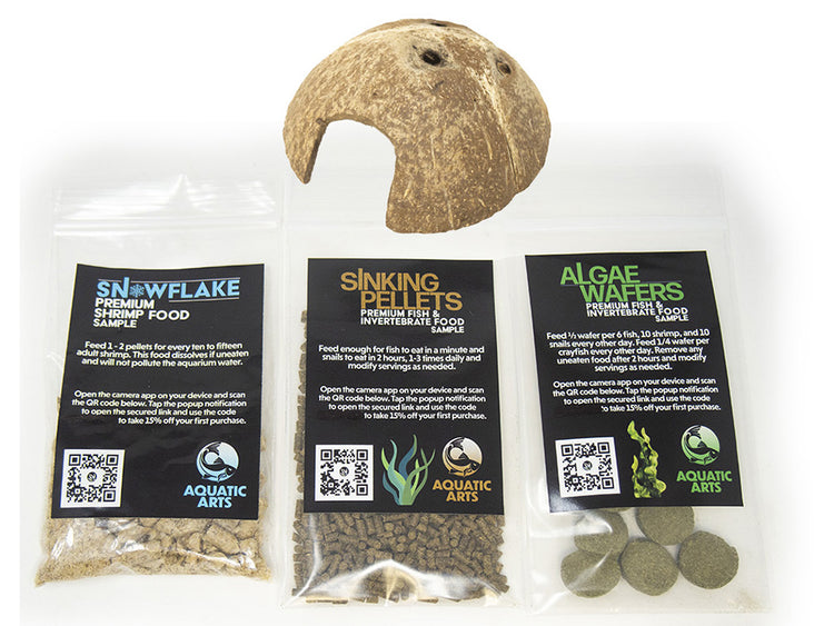 Right now at Aquatic Arts, when you stock up on select supplies you can get a FREE additional item hand selected by us! Buy 1 Ultra Fresh Vegetables Shrimp Pie – Shrimp Delight Formula (120 ML) and get 1 piece of cholla wood free. Buy 1 Aquatic Arts Starter Crayfish Food Pack and get 1 Coconut Hut FREE. Or Buy 1 Aquatic Arts Beal Pod and get 1 FREE. This special is available while supplies last, does not combine with any other promotions, and ends Thursday, November 13th at midnight. One Pack of each per order!