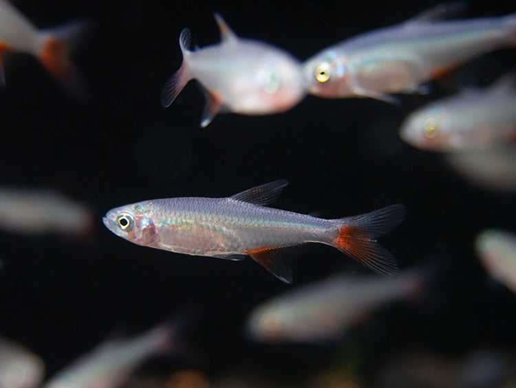 Average Purchase Size: When purchased, these tetras are usually small, ranging from 1/4 to 1 inch (0.6 to 2.5 cm) in length. They'll grow steadily under proper care and a suitable environment, showcasing their vibrant red fins as they mature.