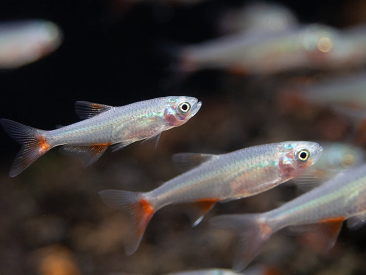 Striking Red Fins: The vivid red fins against their silver bodies create a stunning visual contrast, adding a touch of elegance to any aquarium.