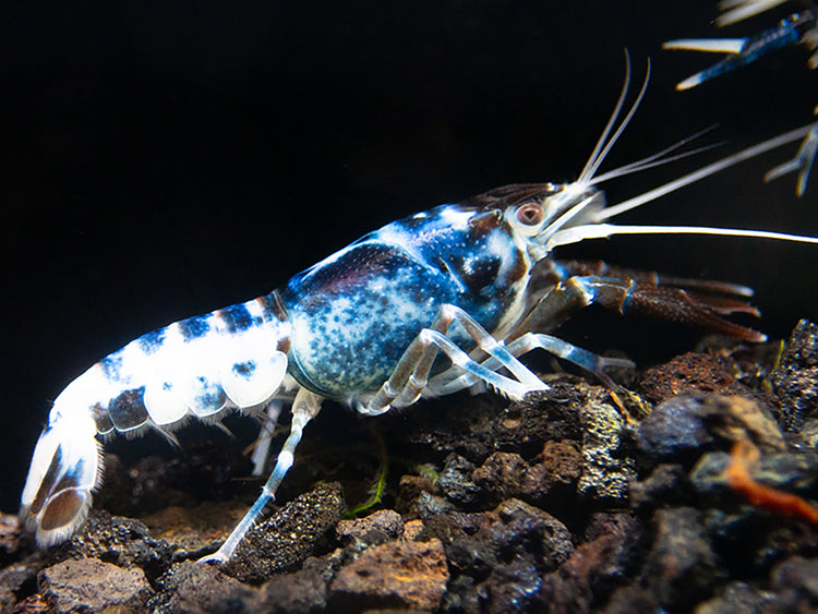 Until now, the Blue Dragon Crayfish has been a rarity in the United States, but we are excited to be among the first stores to offer this unique specimen. Its reputation precedes it, thanks to its mesmerizing blue and white coloration. Each individual boasts a distinctive and intricate marbled pattern, blending shades of dark blue and bright white.
