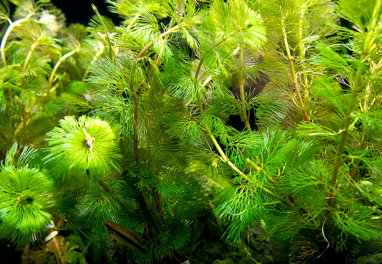 Purple Cabomba, also known as Red Cabomba or Carolina Fanwort, is a large aquatic plant with tall branches. It is truly unique in appearance with its delicate, feathery leaves that fan out from its branches. It is a wonderful plant for providing cover for fish, shrimp, and other aquatic inhabitants, plus it makes any aquarium more aesthetically pleasing. It's a great plant for beginners because it does not require special equipment, care, or knowledge.