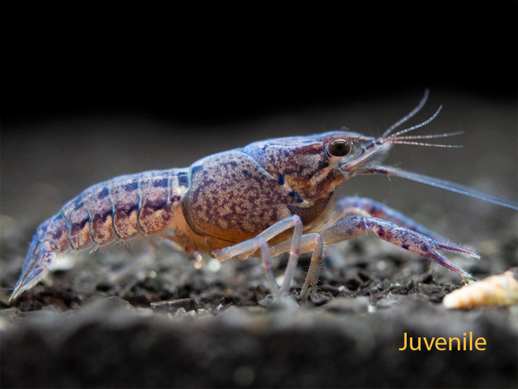 1 Juvenile Electric Blue Crayfish - 1/2 inch+ (A younger and smaller variant of Electric Blue Crayfish at a lower price than our young adult specimens. This is a particularly fast-growing, hardy species and will usually grow well into adult size and coloration within 1 to 3 months. In the meantime, any customers who choose to go with a juvenile specimen can save some money and experience the excitement of watching their little crayfish grow!)