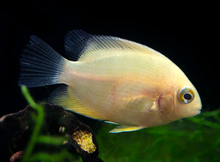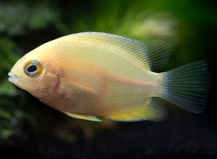 The Gold Severum will thrive in an aquarium with a sandy substrate and plenty of refuge such as clay pots, driftwood, and rock formations. It does consume some plant matter, but it typically does not bother most ornamental plants. This cichlid is generally compatible with other peaceful and semi-aggressive fish too large to be considered prey. Territoriality is typically at its peak during spawning. Due to the eventual adult size of the Gold Severum, it should not be kept with most ornamental invertebrates. If spawning is desired, tankmates of other species should be kept to a minimum or avoided altogether. It should also be noted that the Gold Severum is typically more peaceful with tankmates when it is grown up with them from juvenile age rather than introduced as an adult.