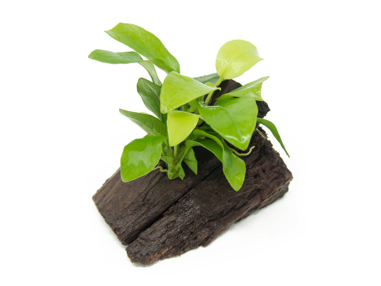 Golden Anubias Nana (Anubias barteri var. “Golden Nana”) on 3+ inch Driftwood