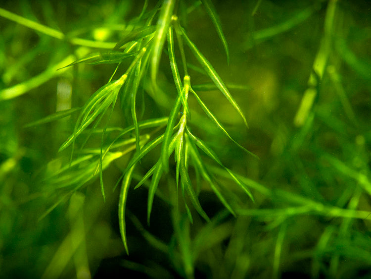 Guppy Grass (Najas guadelupensis) is a very in-demand plant that is visually attractive, but also extremely useful to fish and invertebrate breeders. It provides excellent refuge for fry while also helping to maintain very good water quality. This plant can thrive in low-light and low-tech setups and will grow into a large mass that can be easily pruned. Guppy Grass can be planted, but it is typically best left floating in a free-form mass. It can even often live in brackish water!
