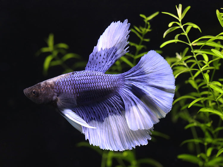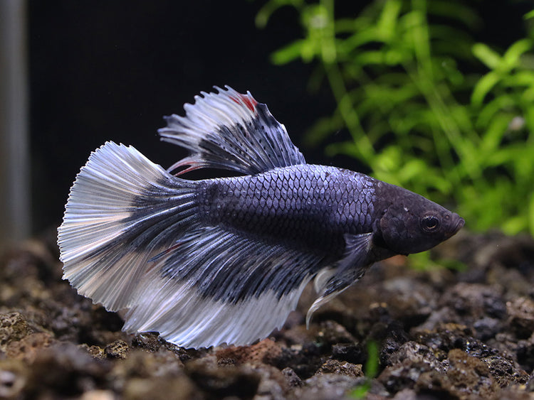 The Halfmoon Butterfly Betta is a visually stunning variety of Betta splendens, featuring a mesmerizing gradient of colors on its fins that transition from a solid body color to crisp, white edges. This unique pattern creates a striking "butterfly" effect, making this betta one of the most sought-after color variants. With its impressive 180-degree Halfmoon fin spread, the Butterfly Betta is a truly captivating fish that stands out in any aquarium.