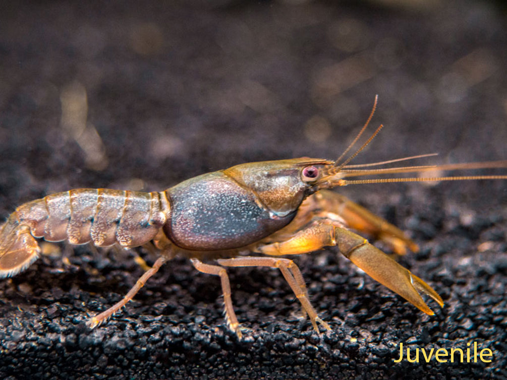 We offer this rare crayfish as a tank raised young juvenile specimen and we do have responsibly sourced adults in stock from time to time as well. It is very easy to house and feed at this size, and you will have the opportunity to watch it grow! Juveniles are typically not as intensely colored as adults, but they will grow to exhibit the vivid coloration for which this variety is known. Juveniles will typically approach young adult size within 6 months with optimal care.