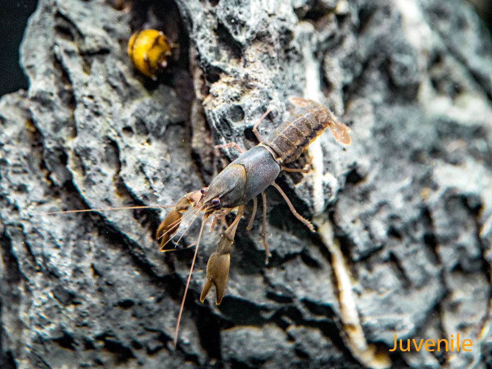 - Social behavior: Can be aggressive/territorial with other crayfish, but is much less so than Procambarus species such as the Electric Blue Crayfish.