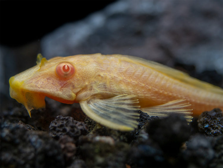 The L083/L165 Albino Sailfin Pleco is an excellent fish for the larger aquarium and is one of the large pleco species that grows to a still manageable size!