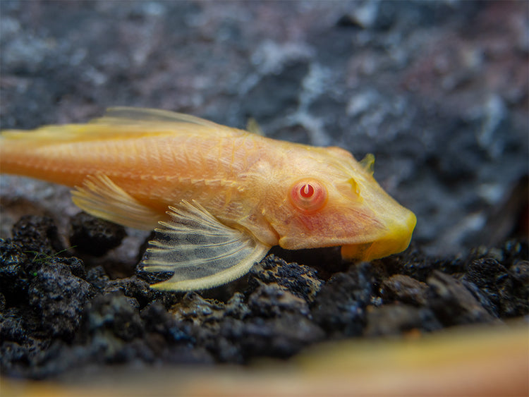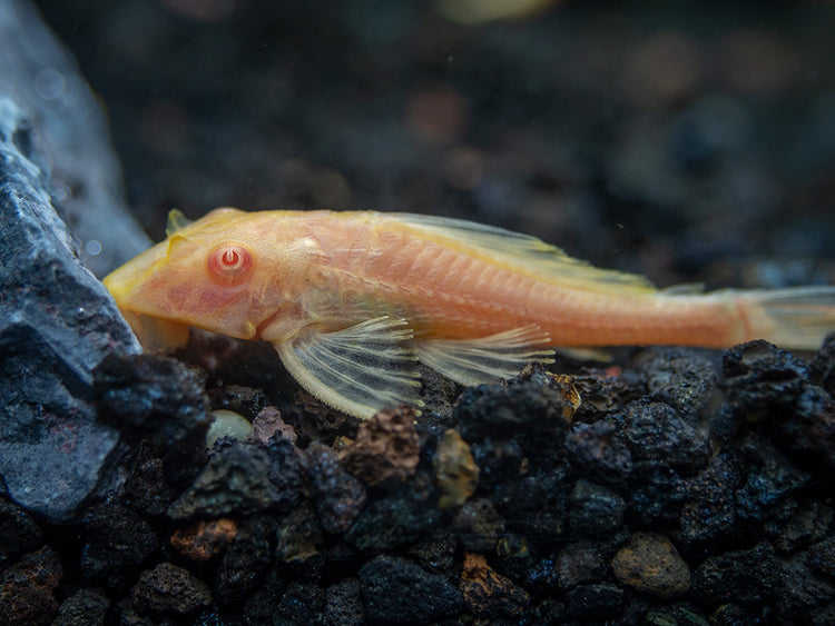 • The Albino Sailfin Pleco is a generally peaceful and hardy addition to the large aquarium.