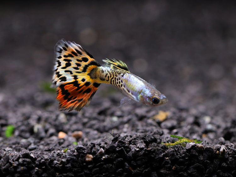 The Leopard Guppy is a visually striking and lively fish, known for its vibrant coloration and intricate leopard-like patterns on its tail and fins. These guppies are tank-bred to ensure exceptional health and adaptability, making them perfect for aquarists of all skill levels. Available as pairs (1 male, 1 female) or individual sexes, these guppies are a dynamic and versatile addition to any community tank or guppy-specific setup.