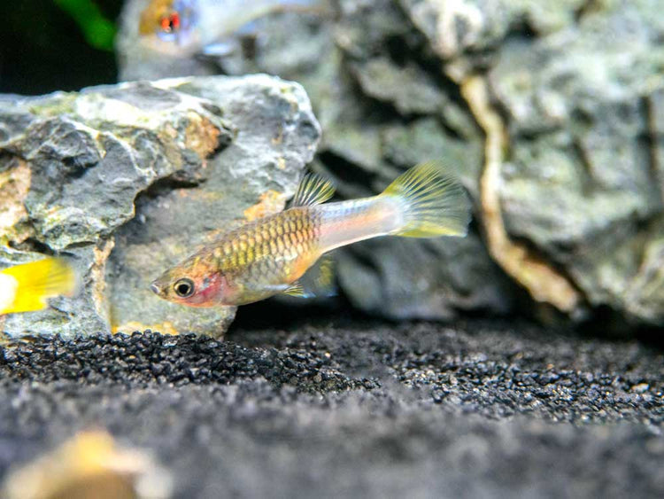 While not a picky eater, the Pingu Guppy will thrive and remain very colorful on a varied diet of meaty foods and some vegetable matter. High-quality flake food, pellets, and frozen or freeze-dried foods will all be readily accepted.