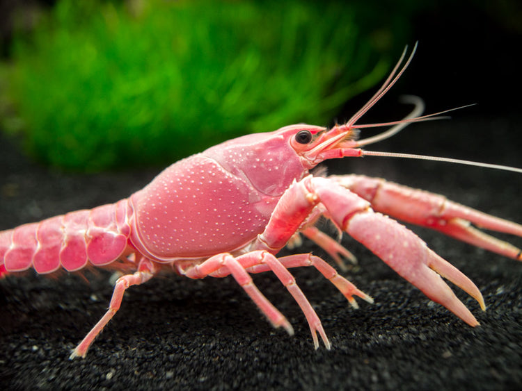 As it reaches adulthood, the Pink Sakura Clarkii Crayfish will become relatively territorial, so it may behave aggressively towards other animals in the tank. It is important that ample hiding places such as rockwork, driftwood, or PVC pipes be provided. This is even more crucial when housing multiple crayfish in the same tank. Due to the size and waste production of this crayfish, a minimum 30-gallon, well-filtered aquarium is necessary for one adult. A larger aquarium can house multiple adults of similar size. This is a very hardy animal, but regular water changes are vital to its optimal health. Other bottom-dwelling invertebrates and fish should not be kept with large crayfish. It is possible to keep mid- and upper-level, fast-swimming fish with the Pink Sakura Clarkii Crayfish, but crayfish are opportunistic feeders and will generally eat whatever they can catch.