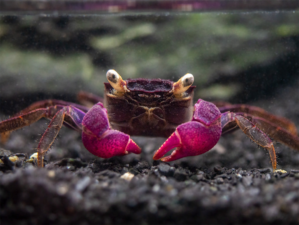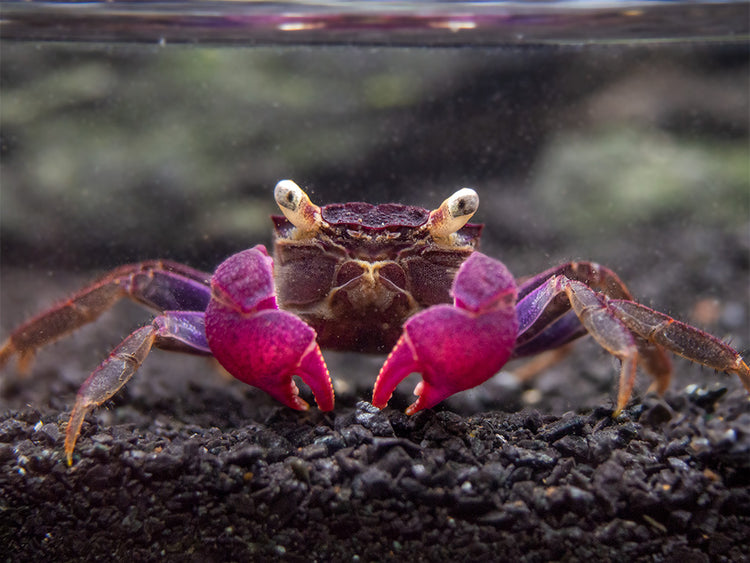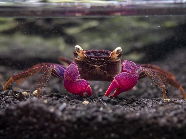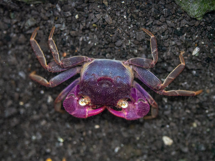 The Purple Vampire Crab is a fascinating semi-terrestrial species that is beautifully marked. It is communal with its own species and is an excellent choice for the paludarium, even nano-sized enclosures!