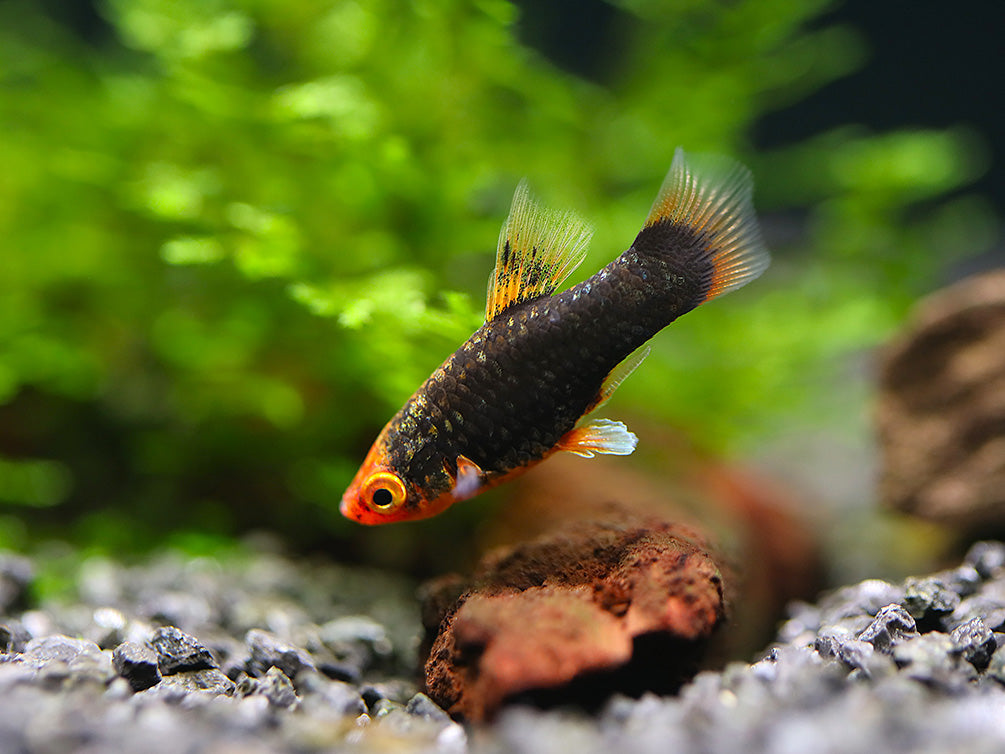 As livebearers, female Red Tuxedo Platies give birth to fully formed, free-swimming fry. To encourage successful breeding, ensure the tank has plenty of plant cover for the fry to hide in. Adults may eat fry if they are not well-hidden, so a well-planted tank will increase fry survival.