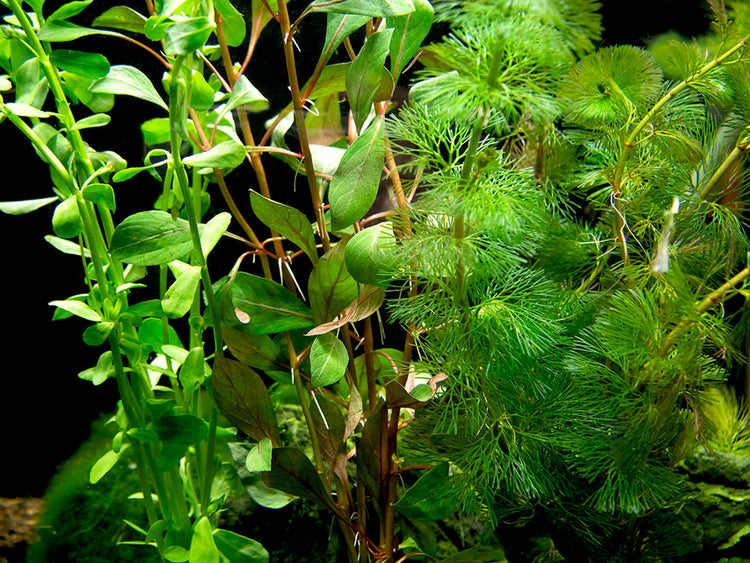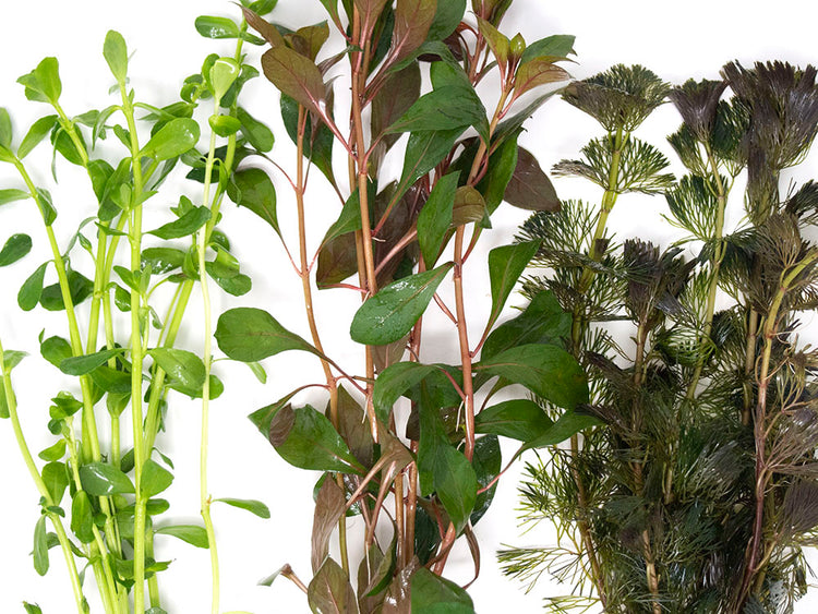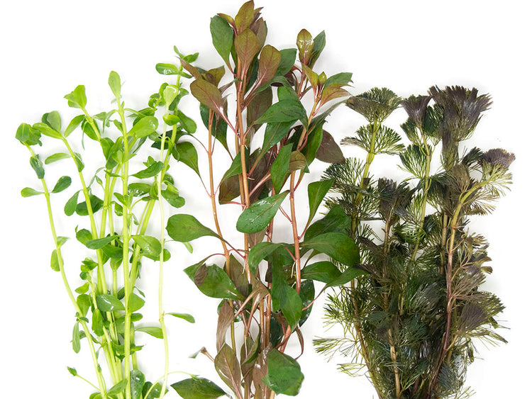 The three varieties of aquatic plants included in this combo pack are fast-growing and grow by using waste and pollutants in the water, making them an extremely effective part of your biological filtration. They have the potential to greatly reduce or even eliminate the need for water changes!