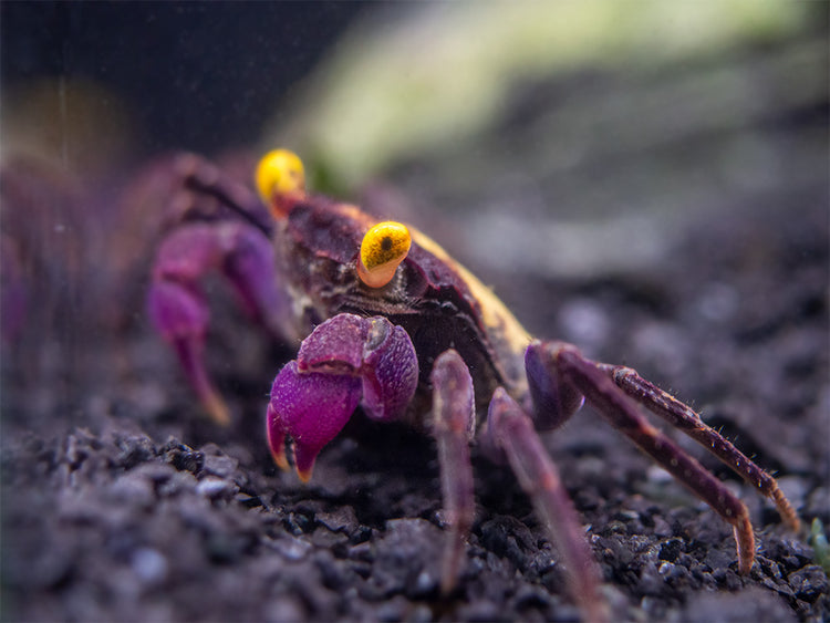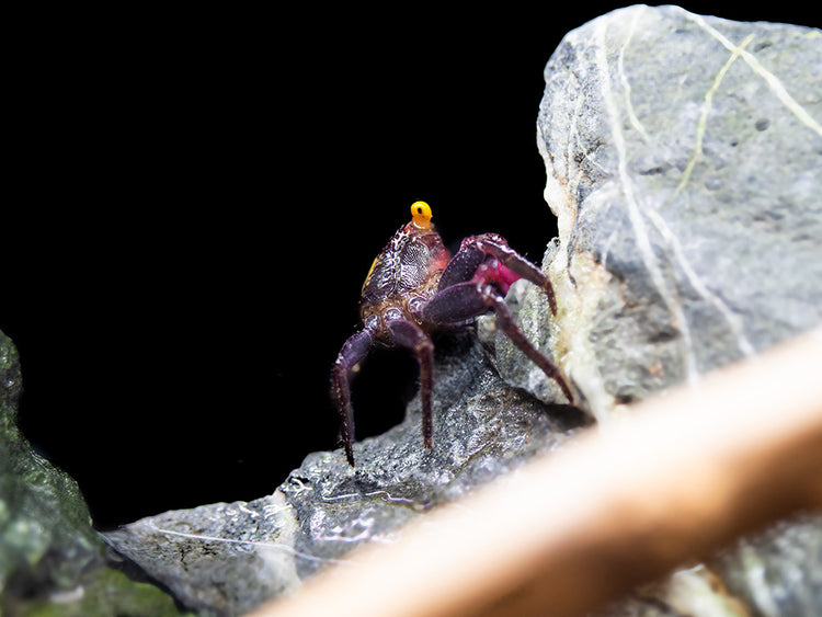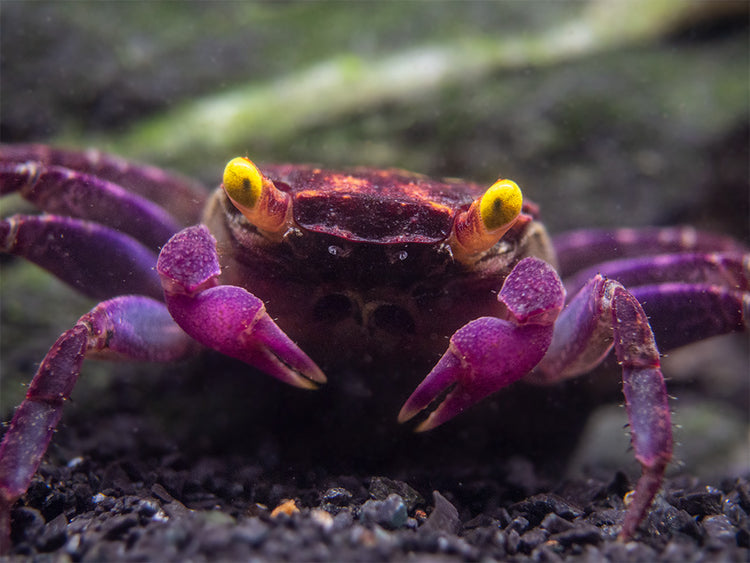 PLEASE READ: This species is a semi-terrestrial crab. NOT FULLY AQUATIC. Its habitat must be at least half (and preferably more) land with freshwater. It is an ideal paludarium animal. Our Vampire Crabs of different colors are not the same species and should not be kept together.