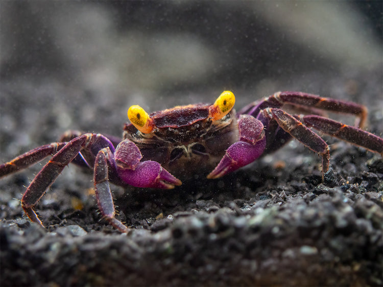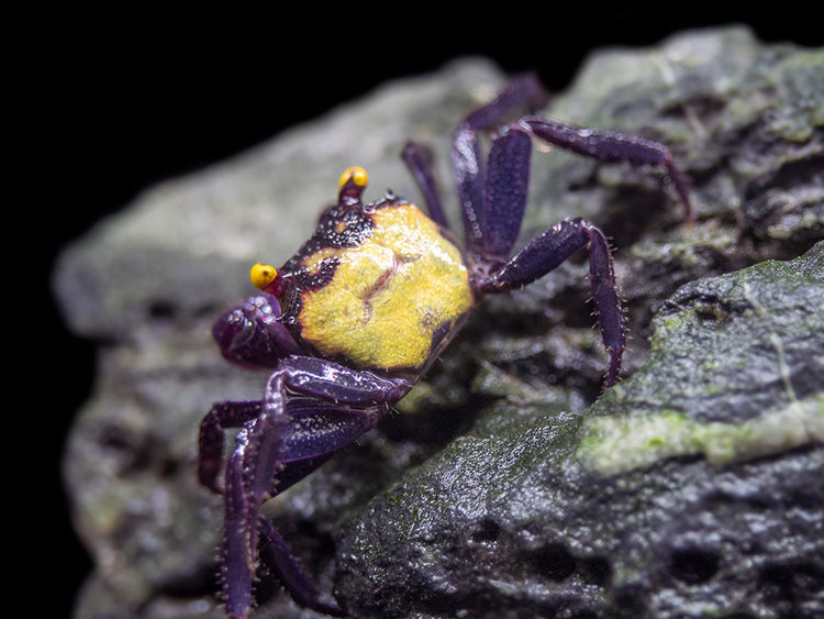 PLEASE READ: This species is a semi-terrestrial crab and is NOT FULLY AQUATIC. Its habitat must be at least half (and preferably more) land with freshwater. It is an ideal paludarium animal. Our Vampire Crabs of different colors are not the same species and should not be kept together.