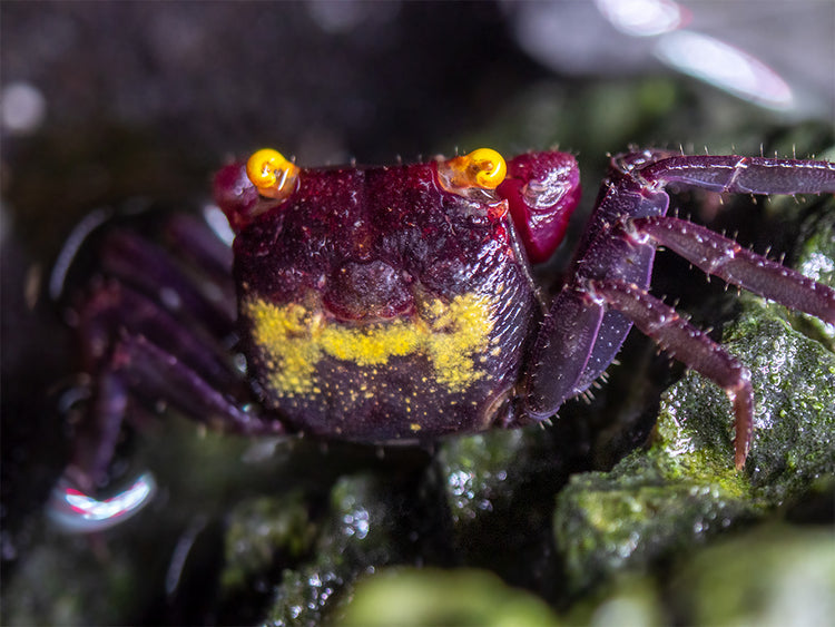 The Vampire Crab is a fascinating semi-terrestrial species that is beautifully marked. It is communal with its own species and is an excellent choice for the paludarium, even nano-sized enclosures!